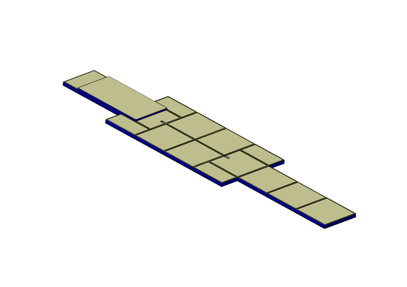 Set, farklı ölçülerde toplam 16 adet minderden oluşmaktadır: 2 adet 100 x 200 x 20 cm, 2 adet 100 x 200 x 20 cm, 2 adet 200 x 200 x 20 cm, 6 adet 200 x 200 x 20 cm, 1 adet 300 x 200 x 20 cm, 2 adet 200 x 150 x 20 cm, 1 adet 400 x 200 x 10 cm (belirtilen m² dışında). Minderlerin içeriği 22 dansite konvansiyonel süngerden üretilmiş olup, üst katmanda sertleştirilmiş yapı için XP, halı vb. malzemelerle laminasyon yapılmıştır.