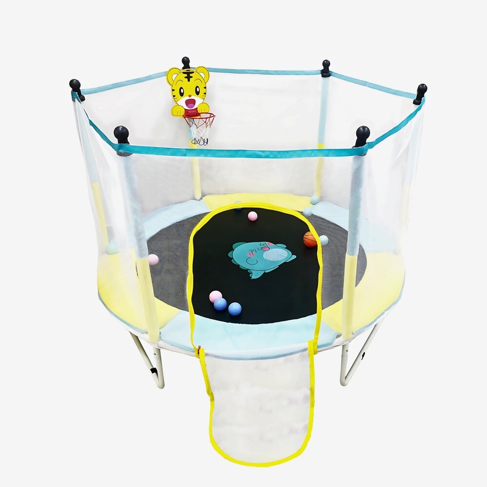 38 cm’lik zemin yüksekliği, tramboline kolay çıkış ve iniş sağlar. Mavi renkteki dış tasarımı ile dikkat çekerken; ister ev içinde ister bahçede, küçük alanlarda bile rahatlıkla kullanılabilir.