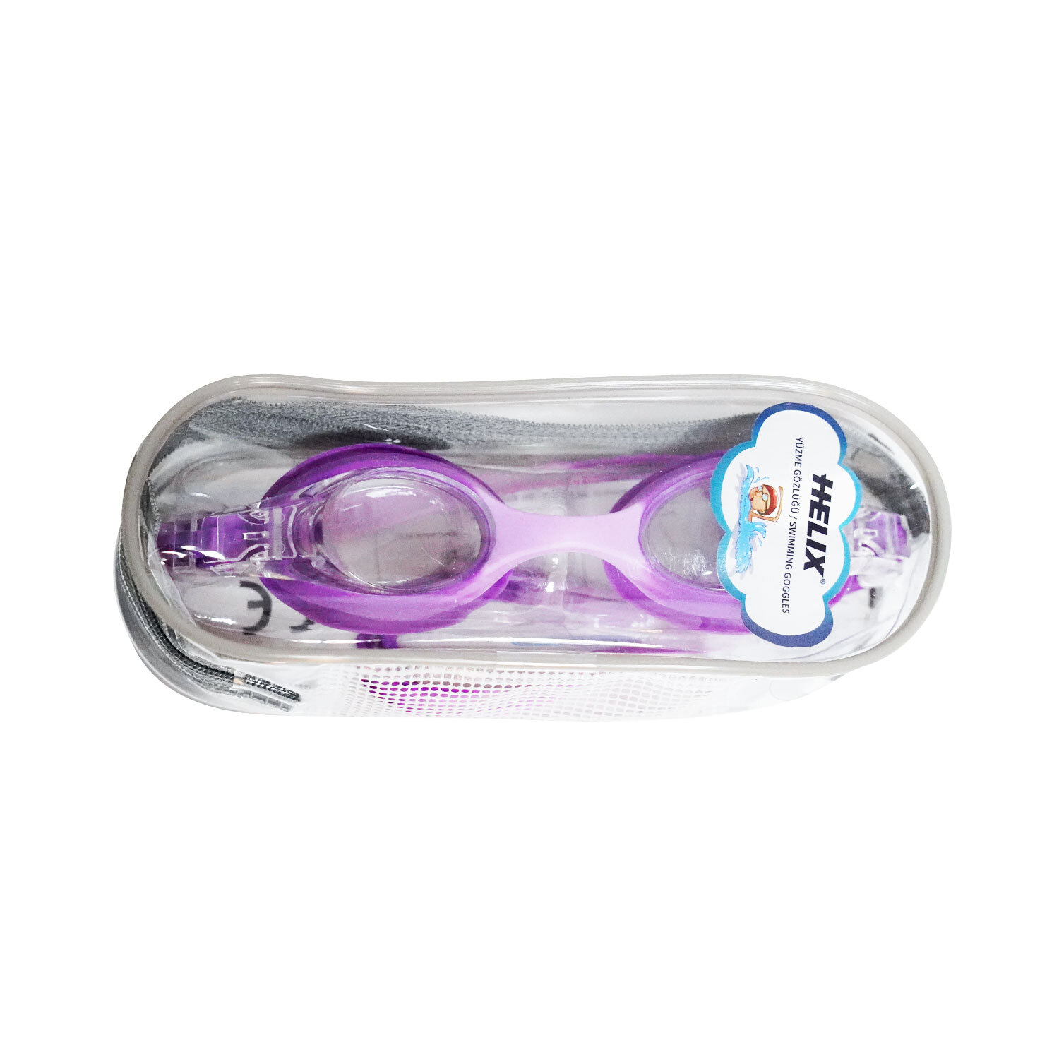 Helix Çocuk Yüzücü Gözlüğü (Mor), 3–10 yaş arası çocuklar için geliştirilmiş, yüzme sırasında konfor, netlik ve koruma sağlayan bir gözlüktür. UV korumalı ve buğu önleyici lensleri sayesinde hem açık suda hem de havuzda güvenli bir kullanım sunar. Ayarlanabilir silikon kayışı ve yumuşak contaları ile yüze tam oturur, su sızdırmazlık sağlar.