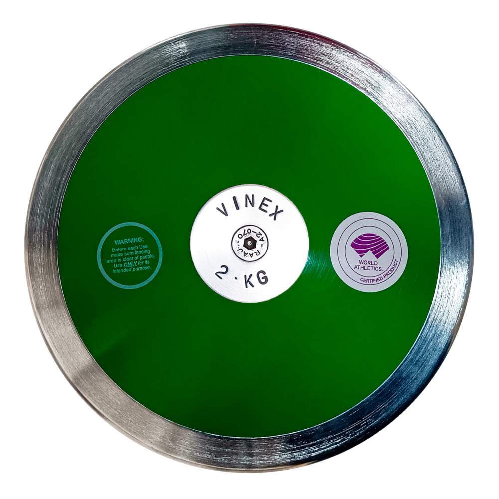 Vinex WA Onaylı Atletizm Diski 2 Kg, atletizmde disk atma disiplini için özel olarak üretilmiş, World Athletics (WA) tarafından resmi olarak onaylanmış, yüksek performanslı ve dayanıklı bir müsabaka–antrenman diskidir.